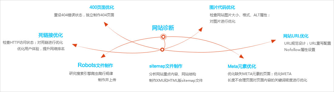仟億網站優(you)化策略的(de)實施包括死鏈接優(you)化、404頁(yè)面優(you)化、Robots文(wén)件製(zhi)作(zuò),圖片代(dai)碼優(you)化、網站URL 優(you)化、Sitemap文(wén)件製(zhi)作(zuò)、Meta元素優(you)化七大(da)網站優(you)化要素,傳(chuan)悅從(cong)這七箇(ge)