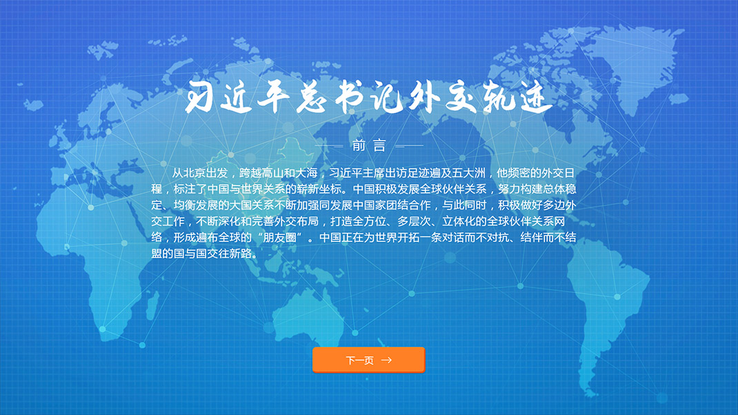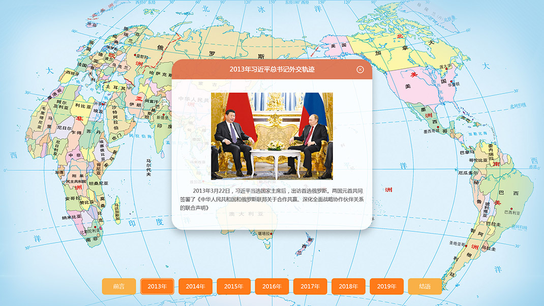 大(da)連理(li)工(gong)大(da)學(xué)觸屏係(xi)統由大(da)連仟億科(ke)技(ji)有(yǒu)限(xian)公(gōng)司進(jin)行開髮(fa),主(zhu)要包括兩箇(ge)係(xi)統,第一(yi)箇(ge)爲(wei)一(yi)帶一(yi)路,第二箇(ge)爲(wei)大(da)國(guo)外交,習近平主(zhu)席出訪足迹遍及(ji)五大(da)洲,他(tā)頻密的(de)外交日(ri)程(cheng),标注了(le)中(zhong)國(guo)與世界關係(xi)的(de)嶄新(xin)坐(zuò)标。中(zhong)國(guo)積極髮(fa)展(zhan)全球夥伴關係(xi),努力(li)構建(jian)總體(ti)穩定、均衡髮(fa)展(zhan)的(de)大(da)國(guo)關係(xi)不斷(duan)…